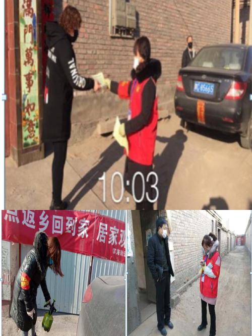 马萍、刘文玲、冀红霞,作为胜利社区临时工并没有因其临时工的身份、微薄的工资而退缩,反而迎难而上本着越是艰险越向前的精神每天摸排管辖片区的情况、对于辖区卫生进行消毒打扫、查验核实外来人员车辆等抗疫工作、身体力行诠释“艰苦奋斗、克己奉公”的精神。
