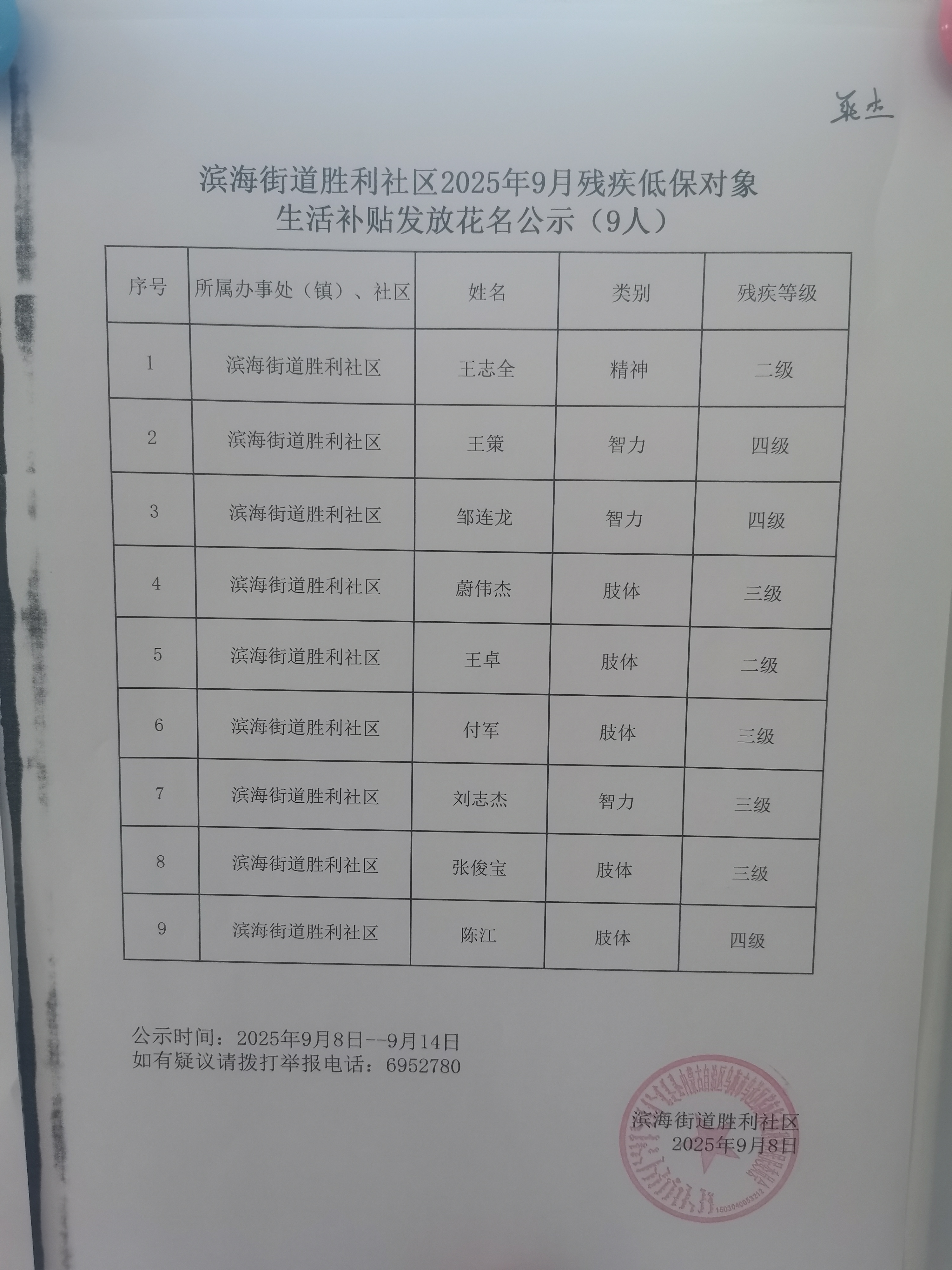 上一篇:胜利社区9月重度一二级残疾人护理补贴发放花名公示