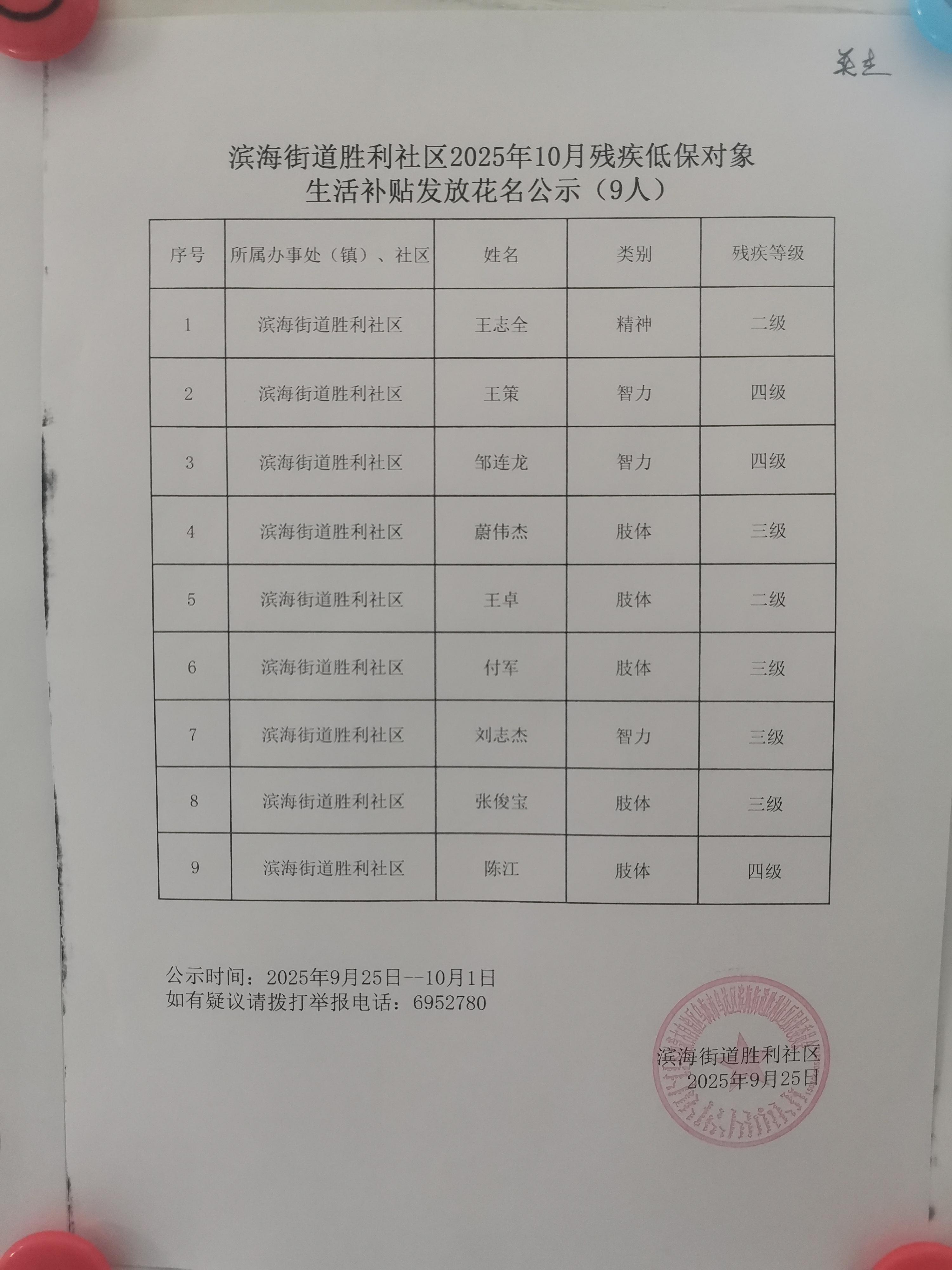 下一篇:胜利社区10月重度一二级残疾人护理补贴发放公示
