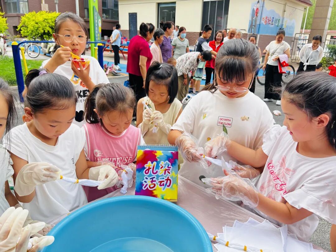 套圈摊位前排起长队,孩子们踮着脚瞄准心仪的物品,大人们也忍不住加入,偶尔套中时的欢呼与“差一点”的惋惜交织成热闹的乐章。手工扎染制作时邻里互帮互助,不少家庭表示“和邻居一起互动,感觉特别亲切”。活动最后,全体参与者合影留念,大家手持纪念小礼品,脸上洋溢着幸福的笑容。