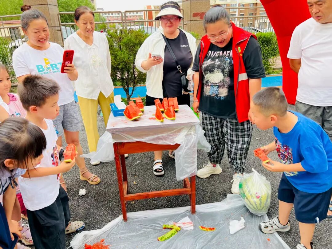 趣味游戏区更是欢声笑语不断,吃西瓜比赛现场,选手们手抓瓜块狼吞虎咽,汁水顺着下巴流,有人急得眯眼鼓腮,引得围观者笑成一团。孩童举着小瓜块凑热闹,满脸甜汁仍拍手叫好,胜负未定,欢乐已漫过整个场地。