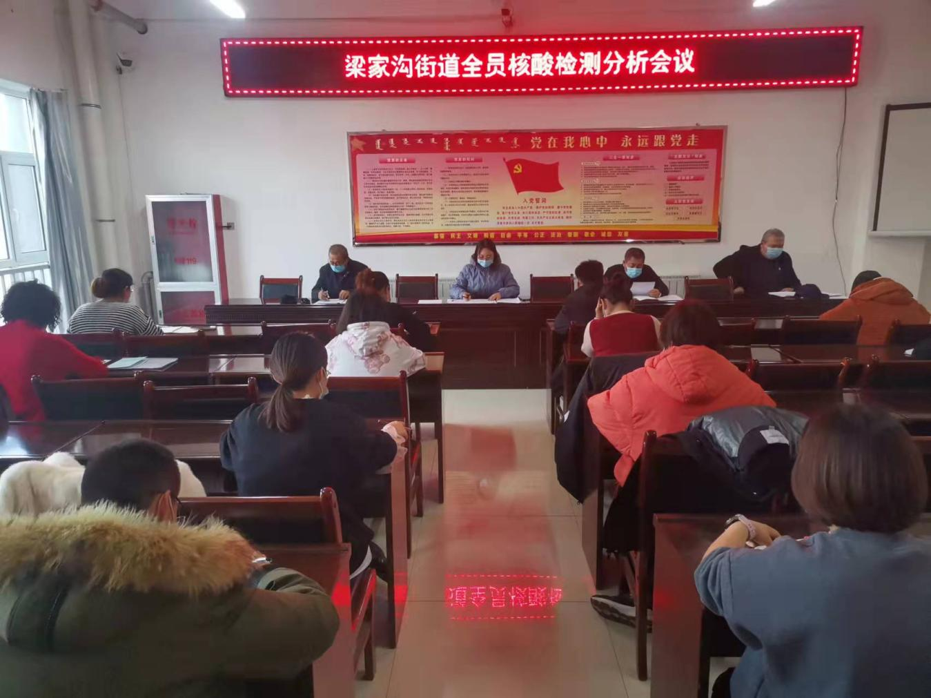 12月1日,梁家沟街道召开全员核酸检测采样演练分析会,街道班子成员、各社区书记及采样点位负责人等30人参加会议。