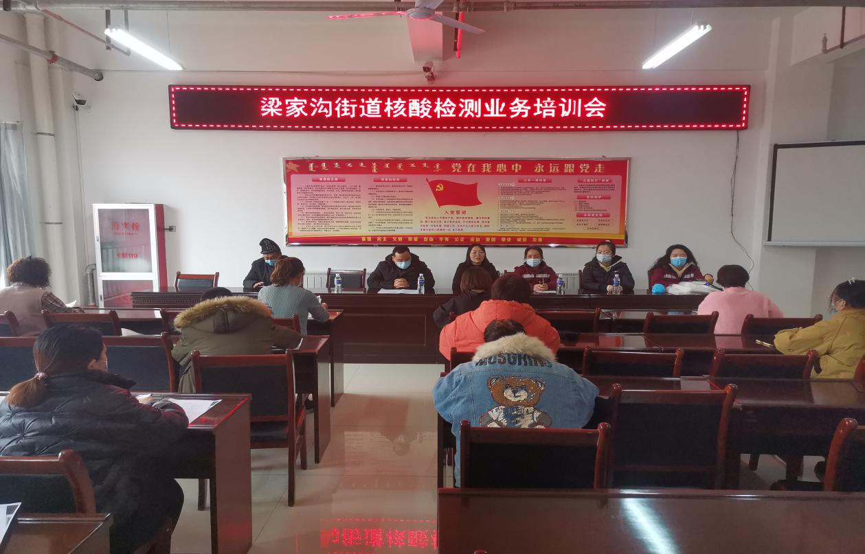 为进一步强化新冠肺炎疫情常态化防控措施,有效应对可能出现的新冠肺炎聚集性疫情,规范全员核酸检测采样工作的业务流程和注意事项,2021年12月8日,梁家沟街道举办全员核酸检测采样业务培训会,街道各核酸检测采样点负责人参加培训。