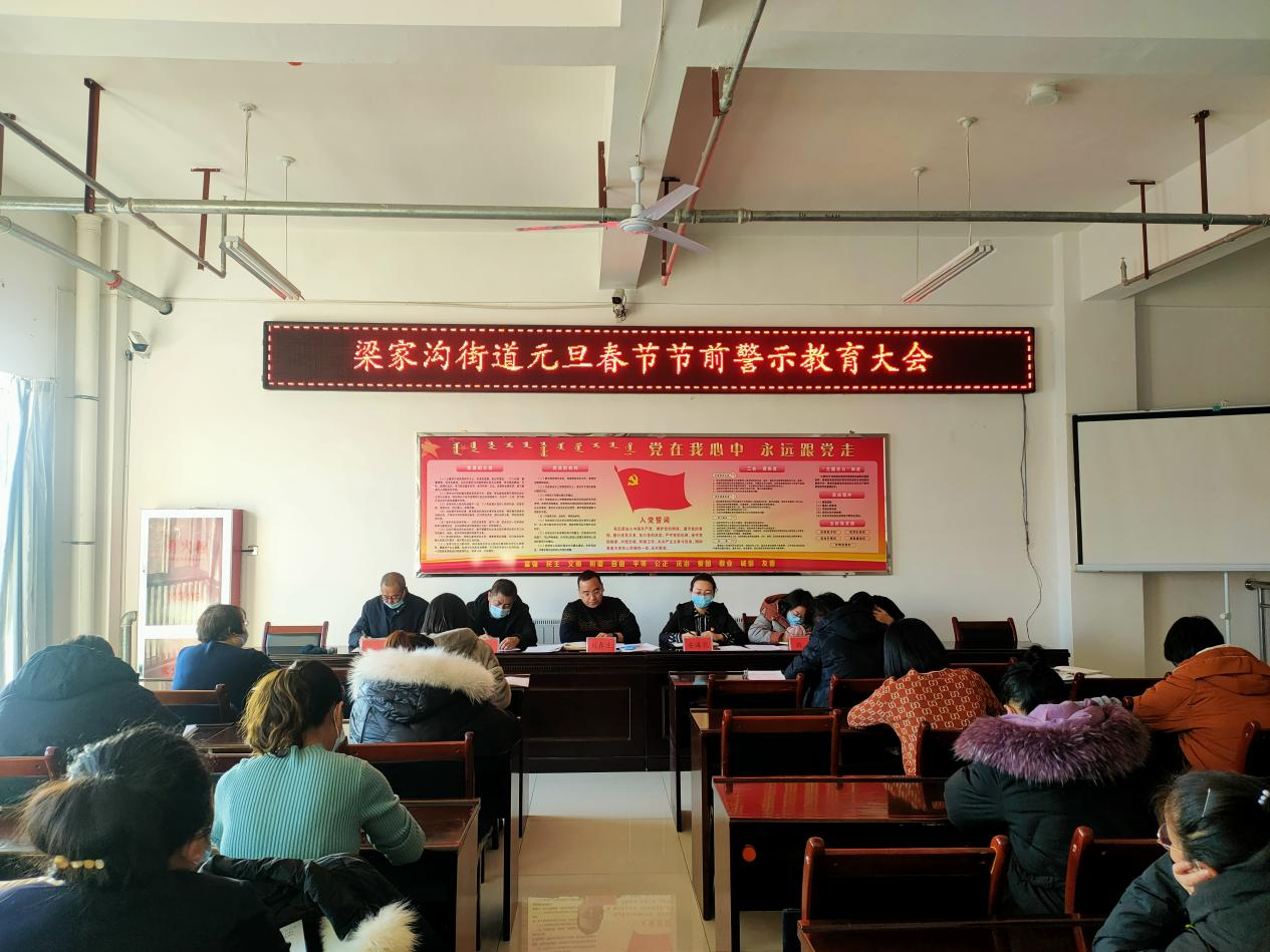 为持续深入贯彻落实中央八项规定及其实施细则精神,在常态化疫情防控下驰而不息纠治“四风”,营造欢乐祥和、崇廉尚俭、风清气正的节日氛围,梁家沟街道召开警示教育会议,传达学习了《关于严明2022年元旦、春节期间廉洁纪律坚决防止“四风”问题反弹的通知》精神严明2022年元旦、春节期间廉洁纪律,坚决防止“四风”问题反弹。