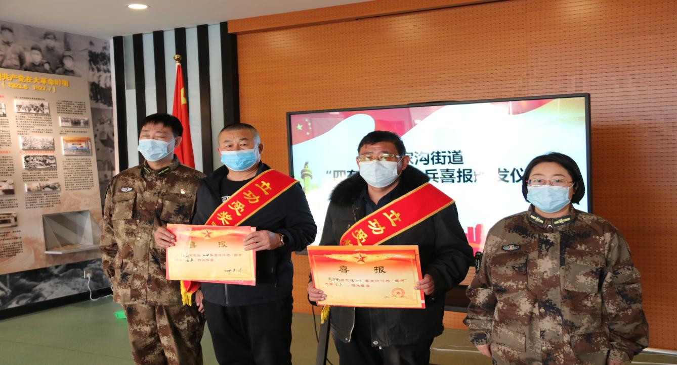一纸喜报,满载荣誉,承载的是对军人的肯定和对军人家属的慰藉,也承载着党和政府的关怀和温暖,彰显了“一人参军,全家光荣”的社会风尚。近年来,梁家沟街道一直高度重视双拥工作,积极落实各项拥军优属政策,通过为立功受奖军人家属送喜报的方式,弘扬拥军优属、拥军爱民的优良传统,营造崇尚荣誉、尊重军人的浓厚双拥氛围,激励现役官兵树立扎根部队、建功立业的决心。