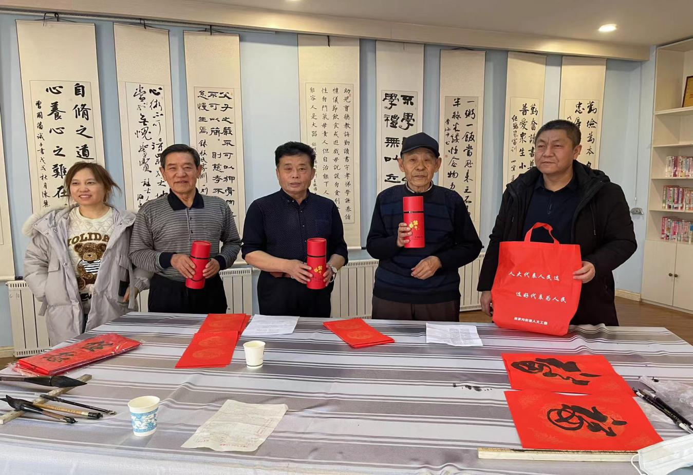无联不成春,有联春更浓。春联是中国传统文化瑰宝,象征着吉祥、平安、幸福,寄托着人们新一年的美好愿望。新春将近,为春节增添喜庆气氛,让大家在墨香中感受渐行渐近的浓浓年味,更为了让新一届人大代表与辖区居民零距离见面。2022年1月26日,梁家沟街道人大工委邀请街道政协委员、辖区书法爱好者、人大代表、居民群众,在永昌佳苑社区开展喜迎新春“人大代表进社区 温暖祝福送春联”活动。