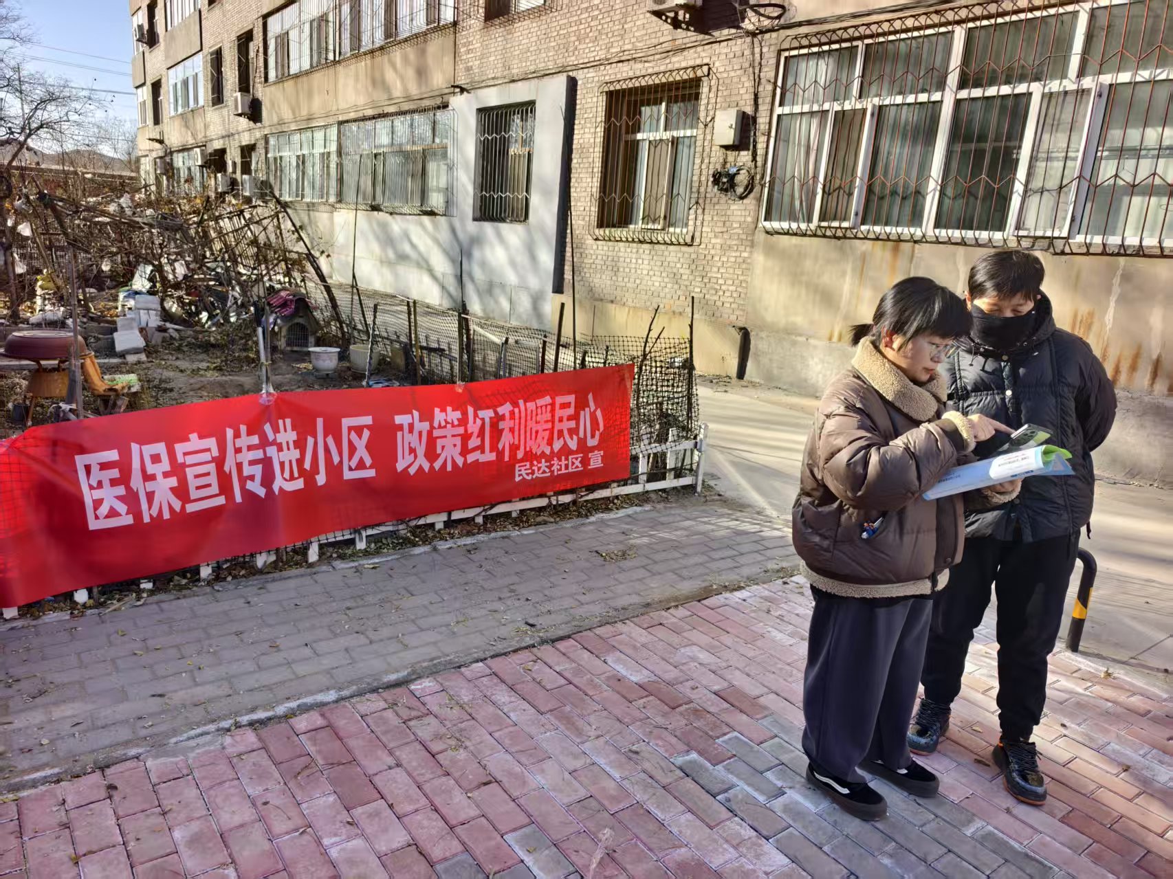 为切实提升辖区居民医保参保率与政策知晓度,让居民清晰了解医保缴费的惠民价值,近日,民达社区以“网格员先学先行、精准宣传惠民”为抓手,开展“医保宣传进社区进小区”系列活动,让医保政策走进千家万户,让参保幸福感深入人心。