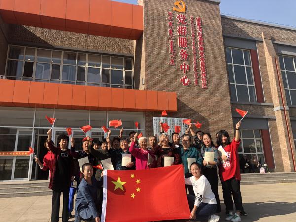 伴随着《义勇军进行曲》的响起,党员们面向国旗唱国歌,用嘹亮的歌声表达对祖国的热爱,向伟大的祖国致以崇高的敬意,2019年9月11日,组织以党员和志愿者为主体的服务队伍深入养老院为老人们“发剪、剪指甲”,受到老人们的一致好评。