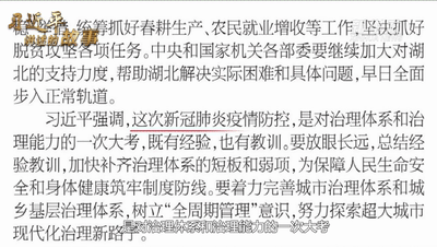 在抗击新冠肺炎疫情的关键时刻,习近平总书记专门赴湖北武汉考察疫情防控工作,将这次新冠肺炎疫情防控,比作是对治理体系和治理能力的一次大考。