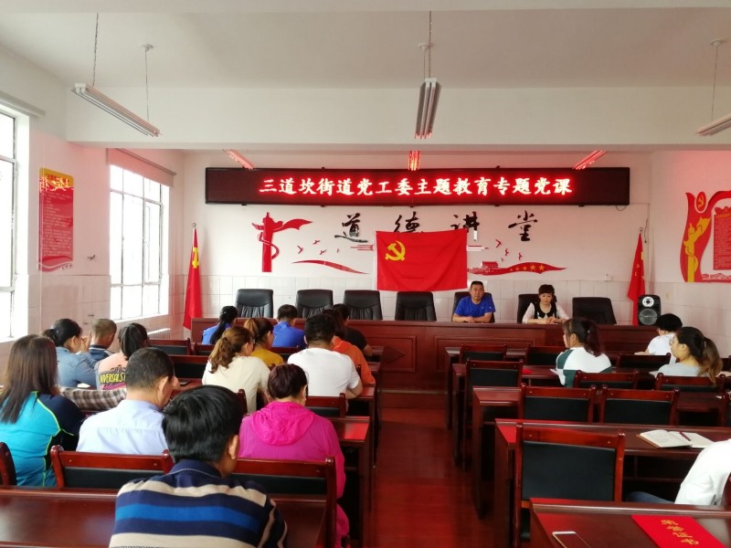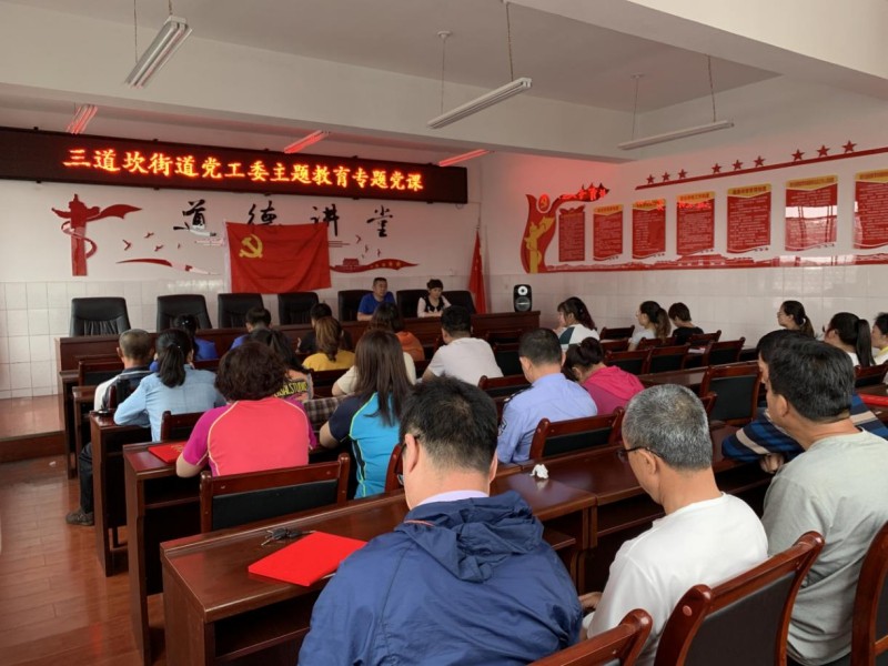 为隆重纪念新中国成立70周年、中国共产党成立98周年,扎实推进“不忘初心、牢记使命”主题教育,引导广大党员立足岗位增强党性觉悟,6月26日,三道坎街道党工委开展主题教育专题党课。街道社区全体党员及工作人员参加了党课学习。