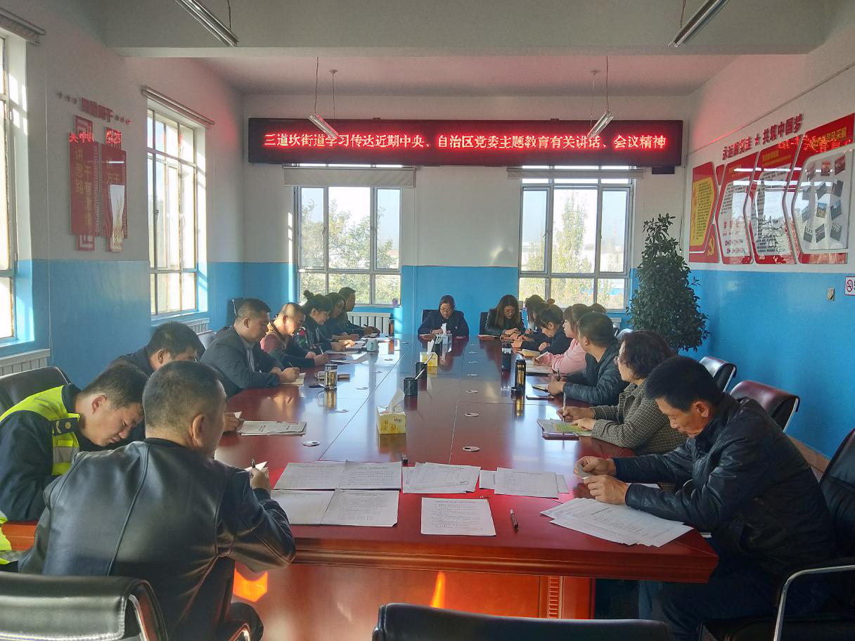 10月30日上午,三道坎街道党工委召开会议学习传达近期中央、自治区党委、市委主题教育有关讲话、会议精神。街道党工委副书记孙红智同志主持,街道领导班子成员、机关支部党员及社区两委成员参会。