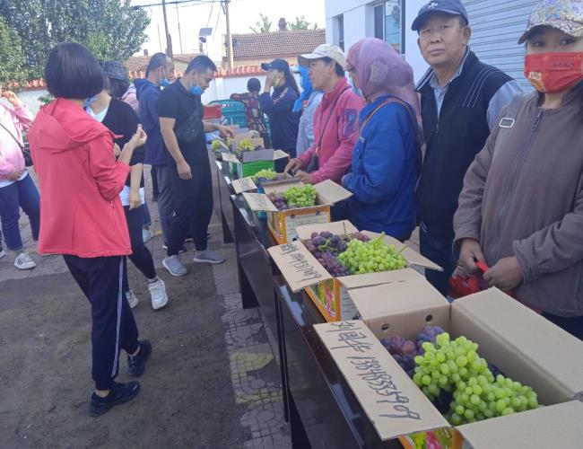 金秋时节,瓜果飘香,一串串金莹剔透、颗粒丰盈饱满的葡萄挂满枝头。为大力弘扬中华民族精神和各民族大团结大发展大繁荣的主旋律,铸牢中华民族共同体意识,贯彻落实习近平总书记乡村振兴战略,打造三道坎葡萄品牌特色,深入开展“民族团结一家亲”活动,9月9日,三道坎街道邀请乌海市总工会、企业代表和保险公司开展“我们的节日·中秋”暨“民族团结一家亲”结对共建助农促销主题活动。