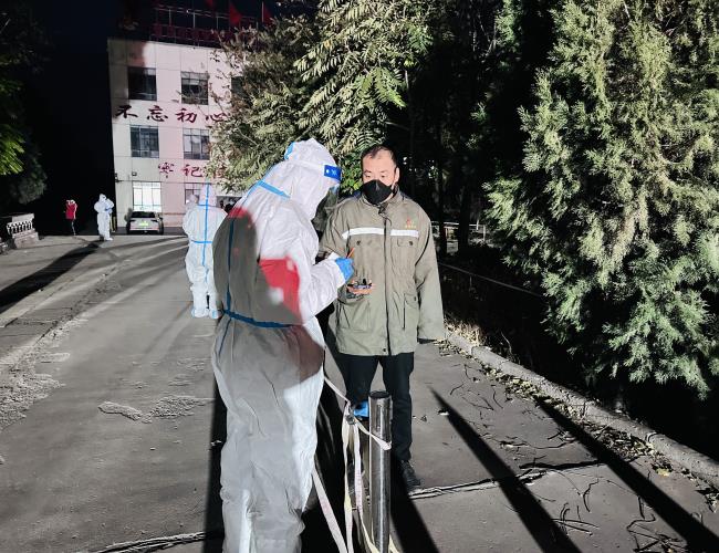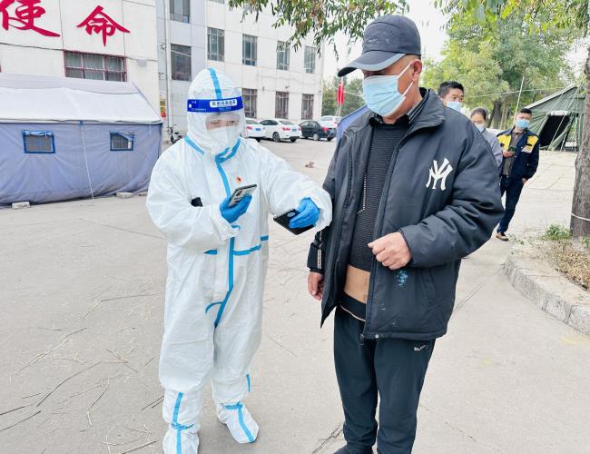 在核酸检测期间,他们一遍遍教居民如何填写信息;面对不会用智能机的老年人也不厌其烦地解决问题;言语提醒“保持间距,戴好口罩”来维持现场的秩序。