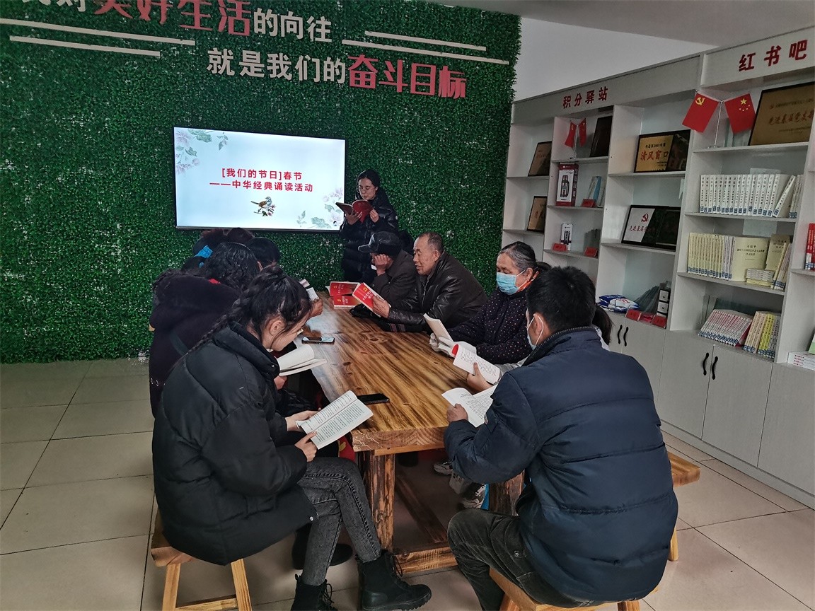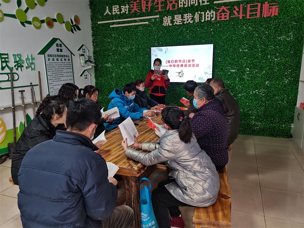 为了进一步弘扬中华民族优秀传统文化,在经典中传承古人先贤的智慧,将传统文化融入社区治理中,提高居民文化素质,丰富居民文化生活。1月29日,三道坎街道胡杨社区组织辖区居民利用社区草原书屋开展“我们的节日·春节”中华经典诵读活动。