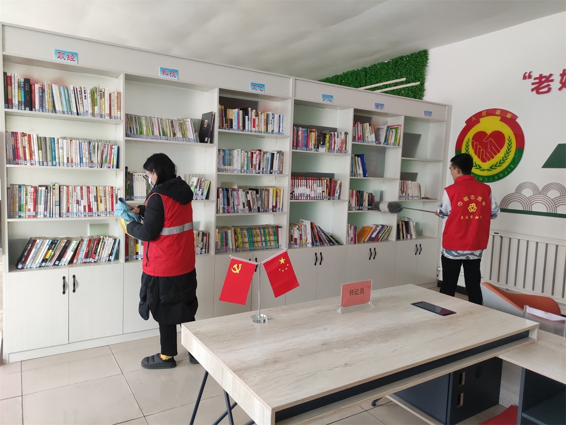 为了给居民提供良好的阅读环境,培养居民爱阅读的好习惯。2月10日下午,胡杨社区工作人员开展草原书屋清扫清洁志愿服务活动。