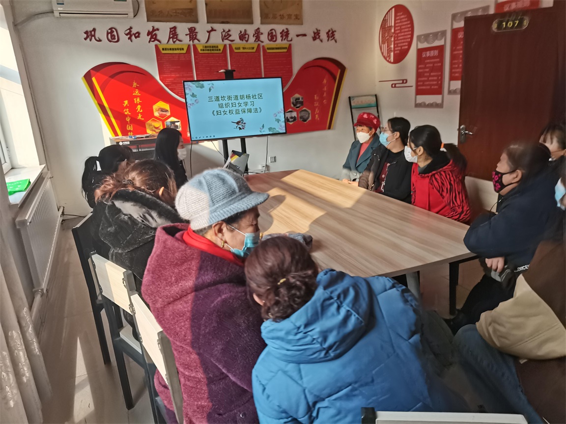 为进一步深化妇女法制学习教育,提高广大妇女的法律意识,胡杨社区2月11日组织辖区妇女及工作人员在社区会议室开展《妇女权益保障法》学习宣传活动。
