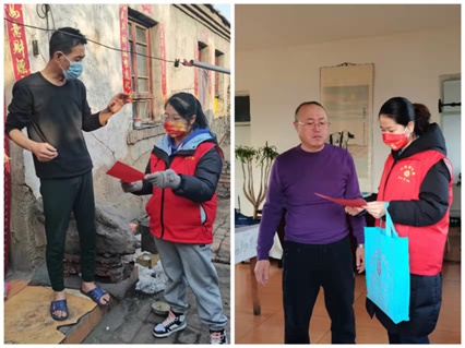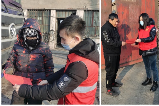 社区志愿者逐门逐户面对面向居民发放《禁放烟花爆竹倡议书》,并详细讲解燃放烟花爆竹的危害,引导居民群众树立安全防范意识和环保意识。