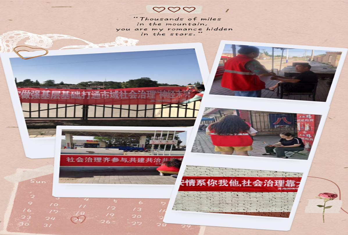 突出方式引导,抓“实”宣传。一是加强内部理论学习宣传,制定了《苏海图街道办事处关于加强市域社会治理现代化试点宣传工作的方案》,组织街道及社区工作人员开展专项学习5次,使工作人员对最新工作方针政策理解清、掌握牢,为开展市域社会治理政策法规知识宣传活动奠定基础。二是扩大外部宣传范围。利用广告牌、电子屏滚动播放试点工作宣传标语、宣传片、动漫视频等,张贴宣传条幅5条,3处LED显示屏滚动播放宣传标语,3处大喇叭播放相关语音广播;利用公众账号、微信群推送市域社会治理现代化试点工作方针政策及开展情况信息30余条,在辖区营造了良好的社会氛围。