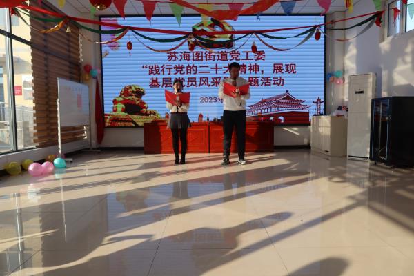 为进一步丰富干部职工文体生活,增进组织的凝聚力、向心力、战斗力,渲染新春喜庆祥和的浓厚氛围,同时树立先进典型,激励担当作为,充分调动工作积极性、主动性。1月9日下午,苏海图街道党工委举办“践行党的二十大精神,展现基层党员风采”主题活动。