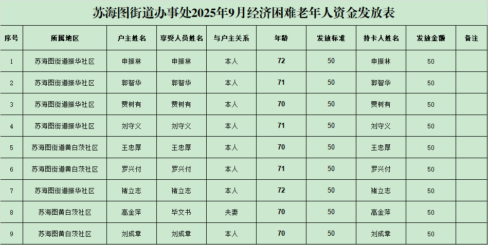 下一篇:苏海图街道办事处2025年8月生活补助资金发放表