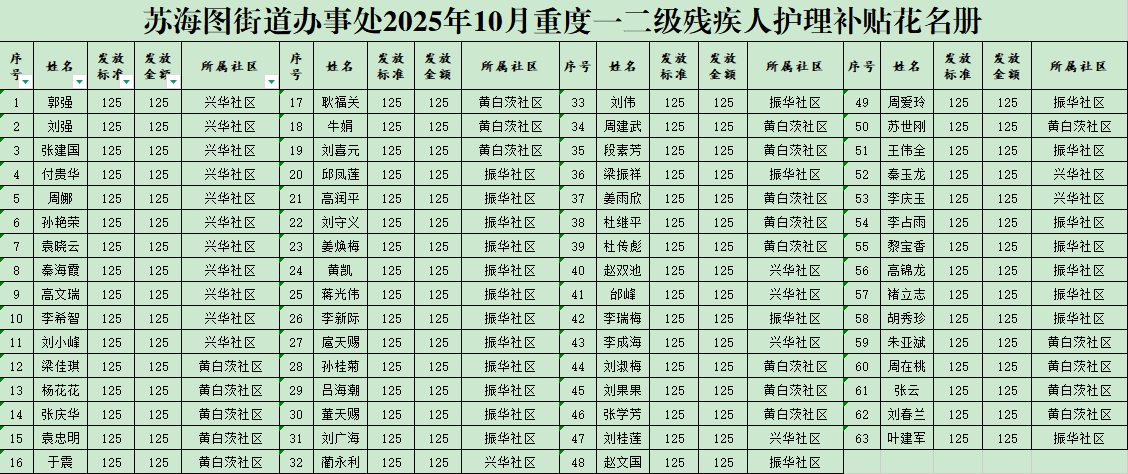 上一篇:苏海图街道办事处2025年10月特困分散供养和照料护理人员花名册