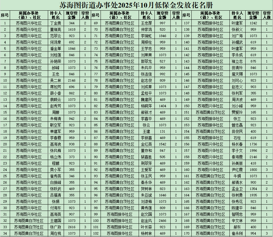 下一篇:苏海图街道办事处2025年10月特困分散供养和照料护理人员花名册