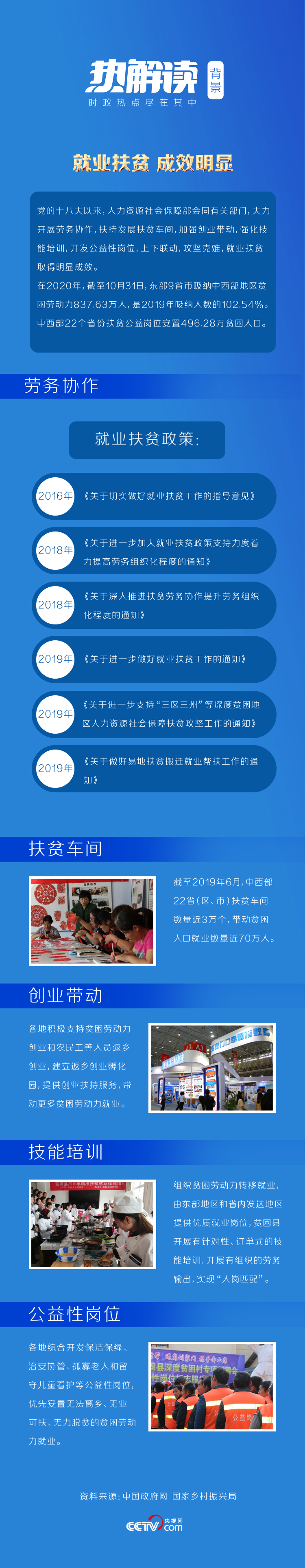 2016年12月,中共中央办公厅、国务院办公厅印发《关于进一步加强东西部扶贫协作工作的指导意见》,对东西部扶贫协作工作提出“组织劳务协作”等五项主要任务。文件要求,西部地区与东部地区开展有组织的劳务对接;东部省份要把解决西部贫困人口稳定就业作为帮扶重要内容……