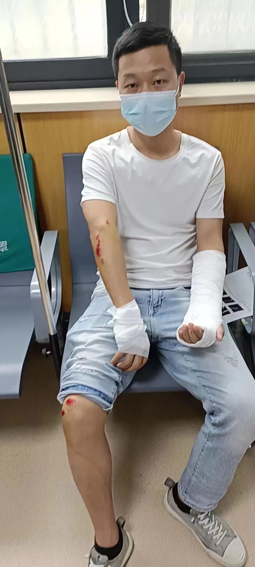自己手掌、手臂、膝盖多处挫伤