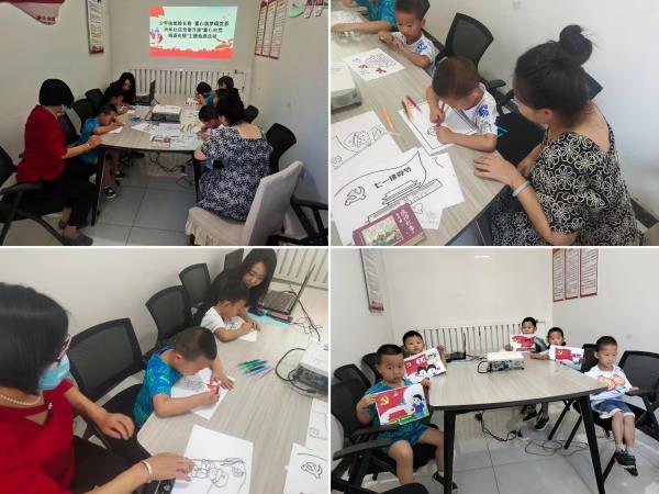 童心向党 绘画传情。社区工作人员化身“教师”带领孩子们一起绘画美好未来。小朋友们发挥着自己的想象力,带着对党的热爱,融合党徽、党旗等红色元素,用自己的方式向祖国献礼。大家领到画笔和纸后,很快投入到创作当中去,用手中的画笔勾勒红色印记,用色彩点燃爱国情怀,描摹出对党和祖国的无限热爱,用童真童趣的作品表达对党对祖国的浓浓敬仰之情。