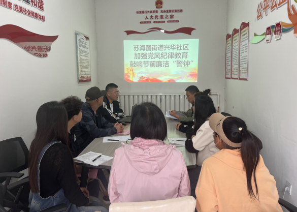 中秋、国庆将至,为切实做好节日期间党风廉政建设,进一步巩固落实中央八项规定精神成果,驰而不息纠治“四风”树新风,苏海图街道兴华社区召开“中秋、国庆”节前警示教育专题会,拧紧廉洁过节“安全阀”,敲响纪律警钟。对中秋、国庆期间的党风廉政建设工作及早部署,狠抓落实,确保节日期间党风廉政建设落到实处。