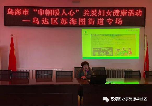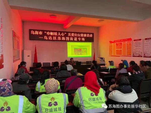 为进一步提升社区妇女的自我保健意识,切实关爱妇女身心健康,减少女性两癌的发生率和减少率,振华社区组织辖区居民在苏海图街道办事处一楼会议室参加乌海市妇幼举办的“巾帼暖人心”关爱妇女健康科普知识讲座活动。