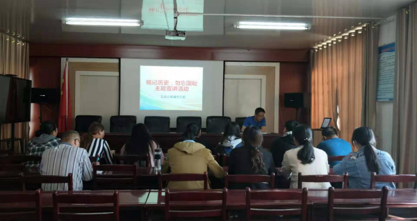 他讲到,1949年8月19日,日本无条件投降,抗日战争以中国人民胜利的战歌响起而宣告结束。岁月匆匆走过七十多年,战火的硝烟早已随风而散,而那串饱含屈辱的数字,那段历经沧桑的国史,那份不堪回首的往事,却永远铭刻在每个中国公民的心中。