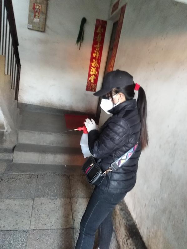 她志愿服务报到的当天,社区将她安排到楼房区的卡口登记处,由于育红社区的三栋楼房属于无物业小区,管理难度非常大,没有门房值守的她只能在外面值守,寒风凌冽她一站便是一天,从没有听她说一句怨言。对于过往人员和车辆,她亲切和人交谈告诉居民减少外出,马上回家,立即洗手、经常通风。对于通过卡口的每一辆车和每一个人,她都详细询问是否家人有外出,是否为租户,是否有亲戚来做客。有时冻的手都拿不住笔了,还是耐心细致地询问填写。当来往人员少的时候,她还不时给三栋楼房公共区域进行反复消毒,每一个角落都不放过,热心的她还帮助前来要消毒液的居民灌装消毒液。