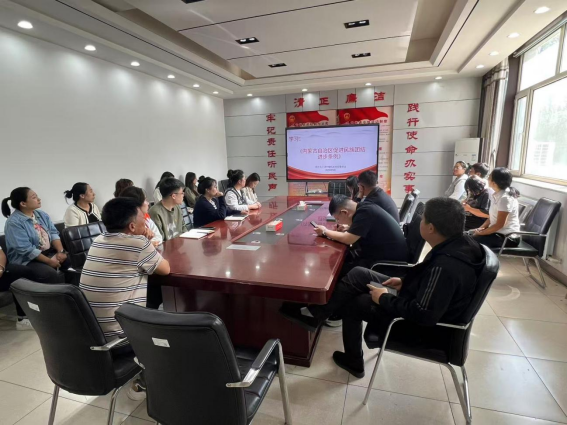活动伊始,严格按照主题党日规定动作有序开展。全体人员齐唱国歌,面向鲜红的党旗庄严宣誓,进一步坚定了为党的事业和祖国伟大复兴不懈奋斗的决心;随后,集体学习了习近平总书记在纪念中国人民抗日战争暨世界反法西斯战争胜利80周年大会和招待会上的重要讲话精神、习近平总书记关于加强和改进民族工作的重要思想、《内蒙古自治区促进民族团结进步条例》、六句话的事实和道理等,进一步坚定党员干部理想信念、强化使命担当,把学习成果转化为推动工作的强大动力,以更加昂扬的姿态走好新时代的长征路。