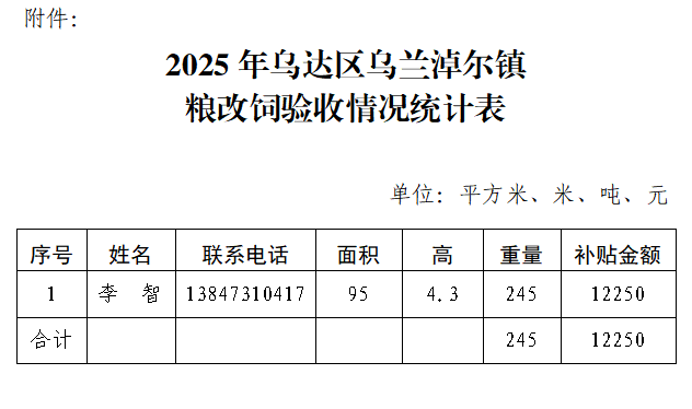 附:2025年乌达区乌兰淖尔镇粮改饲验收情况统计表