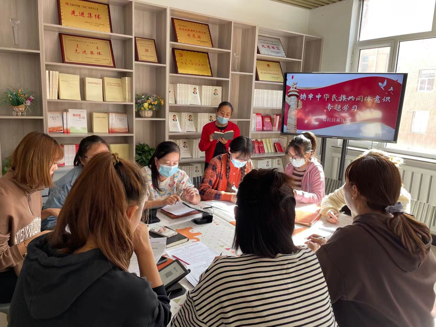 为进一步深化落实铸牢中华民族共同体意识,10月15日,爱民佳苑社区在“鸿雁书屋”开展铸牢中华民族共同体意识专题学习。
