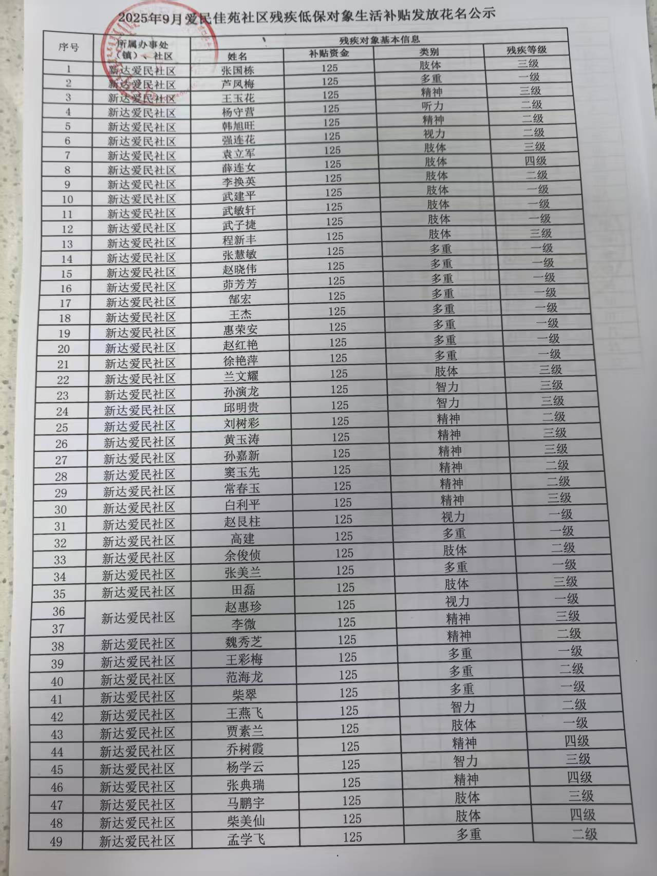 下一篇:【居务公开】爱民佳苑社区2025年9月重度一二级护理补贴花名册公示