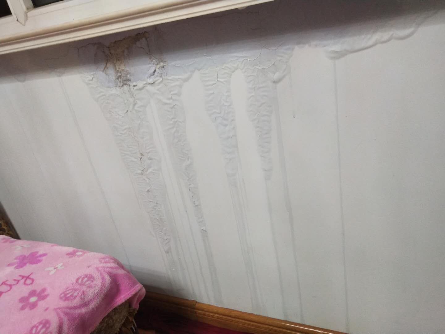 上图为漏雨严重的住户家,墙皮都已泡烂,物业称这是因为外部墙体(保温层)中有断裂的情况,雨水比较大从而引起渗水