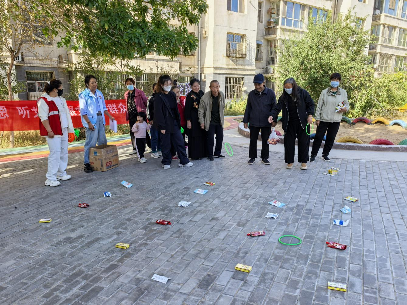 本次运动会更注重趣味性和互动性。社区设置了套圈、投壶、筷子夹球、简易保龄球四个简单易玩、趣味盎然的游戏项目。这些游戏项目考验大家的专注力与稳定性,居民们纷纷凝神屏息,认真瞄准目标,展现出良好的“战斗”状态。每一次命中“目标”,大家都会送上掌声和欢呼声,偶尔的“失误”,也会引得大家哈哈大笑。活动现场热闹非凡,充满了欢声笑语。