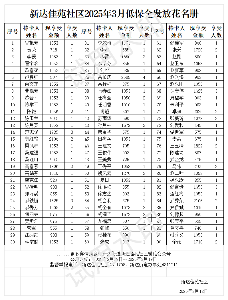 下一篇:【居务公开】新达佳苑社区2025年3月低保停发花名