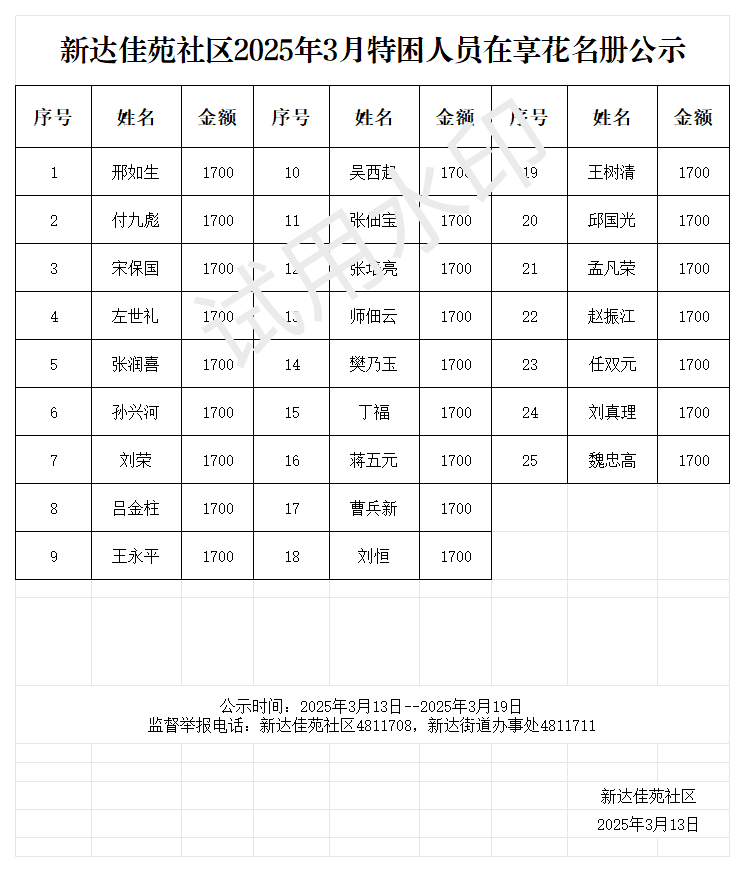 下一篇:【居务公开】新达佳苑社区2025年3月最低生活保障金变更公示
