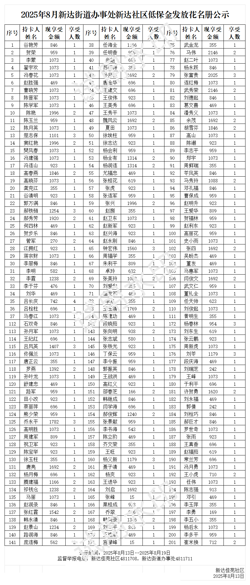下一篇:【居务公开】新达街道办事处新达社区2025年8月低保停发公示