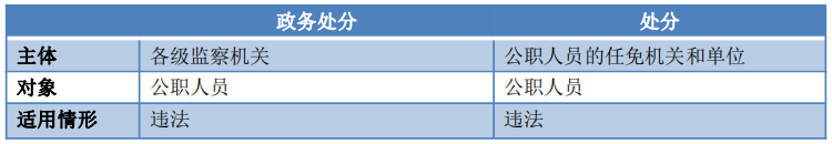 根据政务处分法,对公职人员的处分,政务处分的主体是各级监察机关;处分的主体是公职人员的任免机关和单位。但通过梳理发现,政务处分和处分的对象,均为“公职人员”;适用情形,均为“违法”。