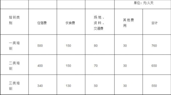 第九条 除师资费外,培训费实行分类综合定额标准,分项核定、总额控制,各项费用之间可以调剂使用。综合定额标准如下: