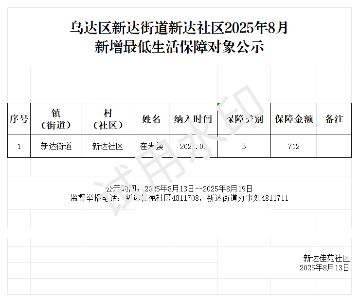 上一篇:【居务公开】新达街道办事处新达社区2025年8月低保停发公示
